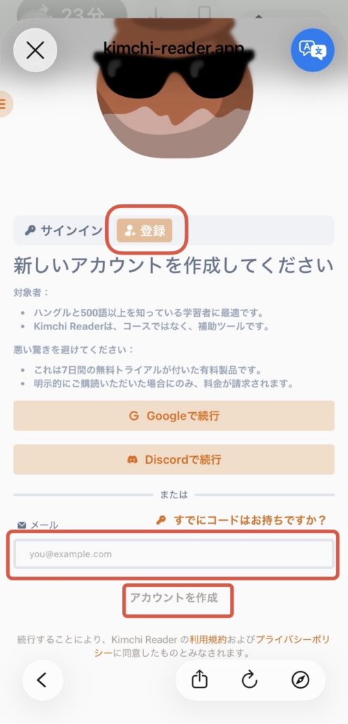 Kimchi Readerのアカウント作成からの流れを説明します。